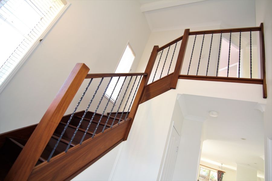 Tiled Open Plan Living Downstairs with Feature Timber Staircase