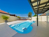 * Large tiled outdoor living & entertaining area overlooking waterway & includes solar heated in ground pool & large timber deck