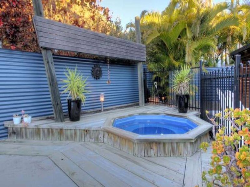 * Entertaining area overlooks oasis style pool & spa in tropical setting