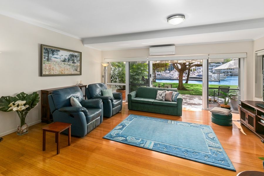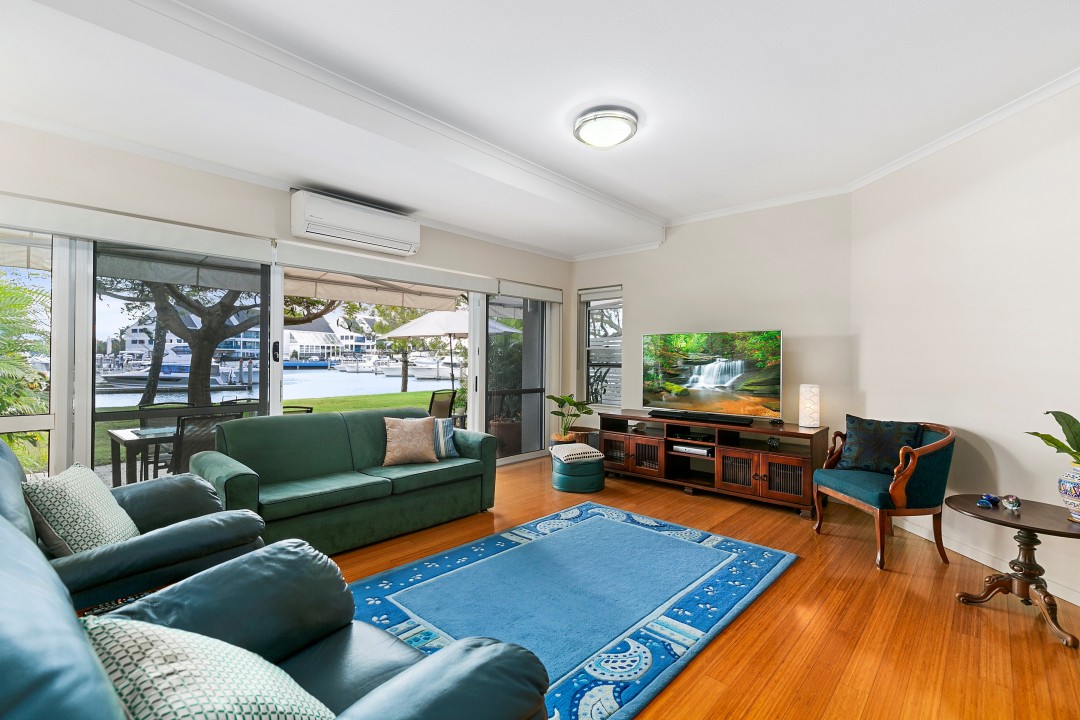 Take advantage of this open plan villa which flows effortlessly out to your own private courtyard overlooking Runaway Bay Marina waterways & beach.