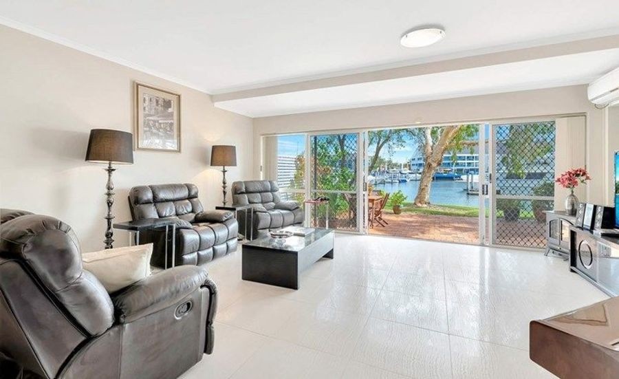 This single level waterfront villa boasts views overlooking the Runaway Bay Marina waterways, parkland & beach.
