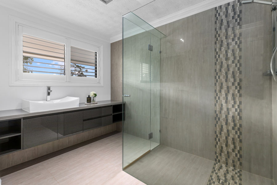 • Contemporary 2-pac kitchen with Caesarstone benchtops, 900mm gas cooktop and oven, soft-close cabinetry