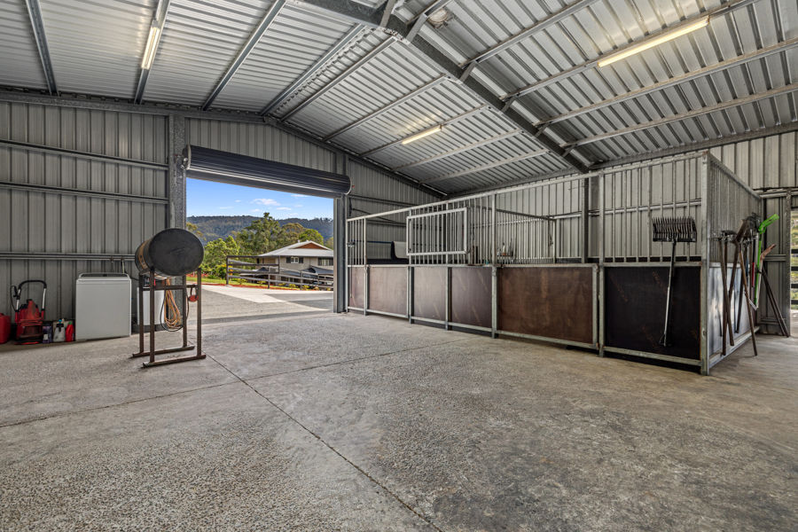 • 15m x 10m machinery shed with two indoor stables, tack room area, and storage for farm equipment