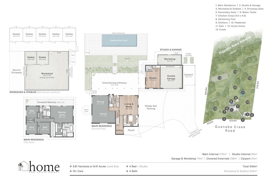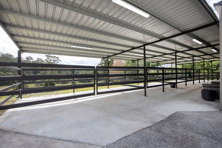 • Covered parking for multiple vehicles, including horse float