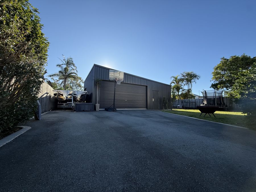 A standout feature would have to be the 9.3m x 7.6m aesthetic double bay work shed with drive-through access from the street for boats, trailers or extra vehicles . Ideal for trades, storage, or hobbies.